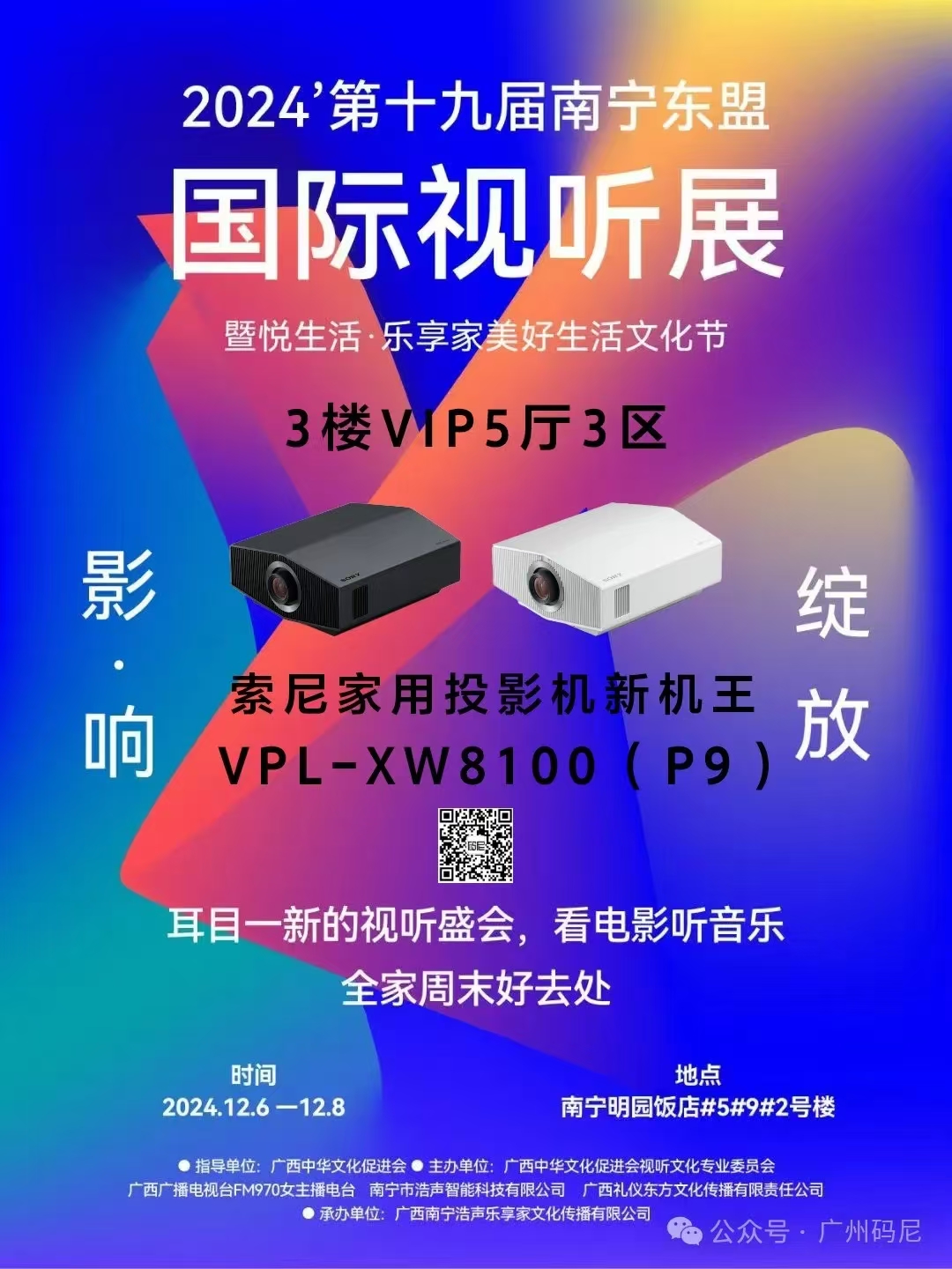 2024南宁东盟国际视听展将于12月6-8日在南宁明园饭店举行。广州码尼将携代理品牌索尼、奥图码等产品参展。