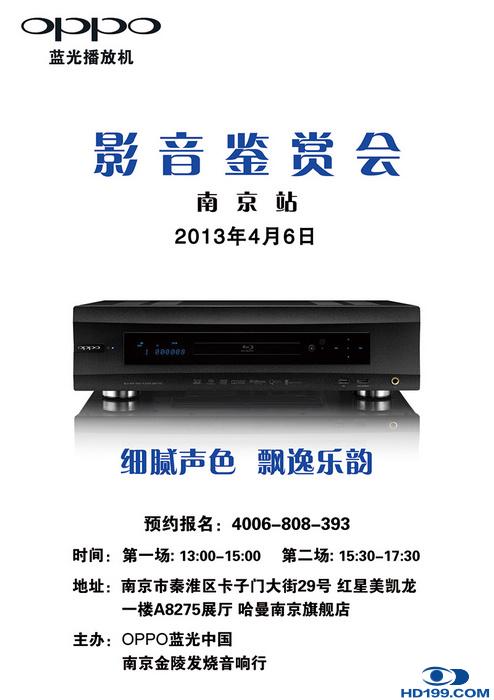 OPPO蓝光影音鉴赏会南京站(金陵发烧音响)2013年4月6日举办,欢迎报名参与。