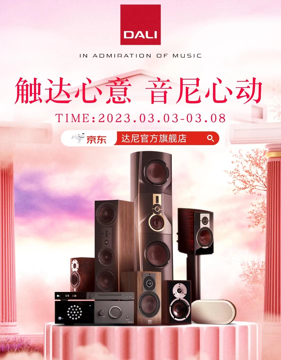 DALI京东旗舰店 ,触达心意 ,音尼心动,天猫旗舰店 ,38焕新周 ,专享宠粉价。
