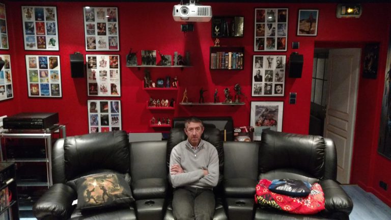 Frédéric 一直很喜爱电影和星球大战。几年来,他建造了一个精密的家庭影院系统。起初是在他公寓的客厅,然后是他在姐夫的帮助下建造一个专用影音室。经过几个月的辛苦付出,他现在可以通过 9.1 声道系统在大屏幕享受多声道环绕声。