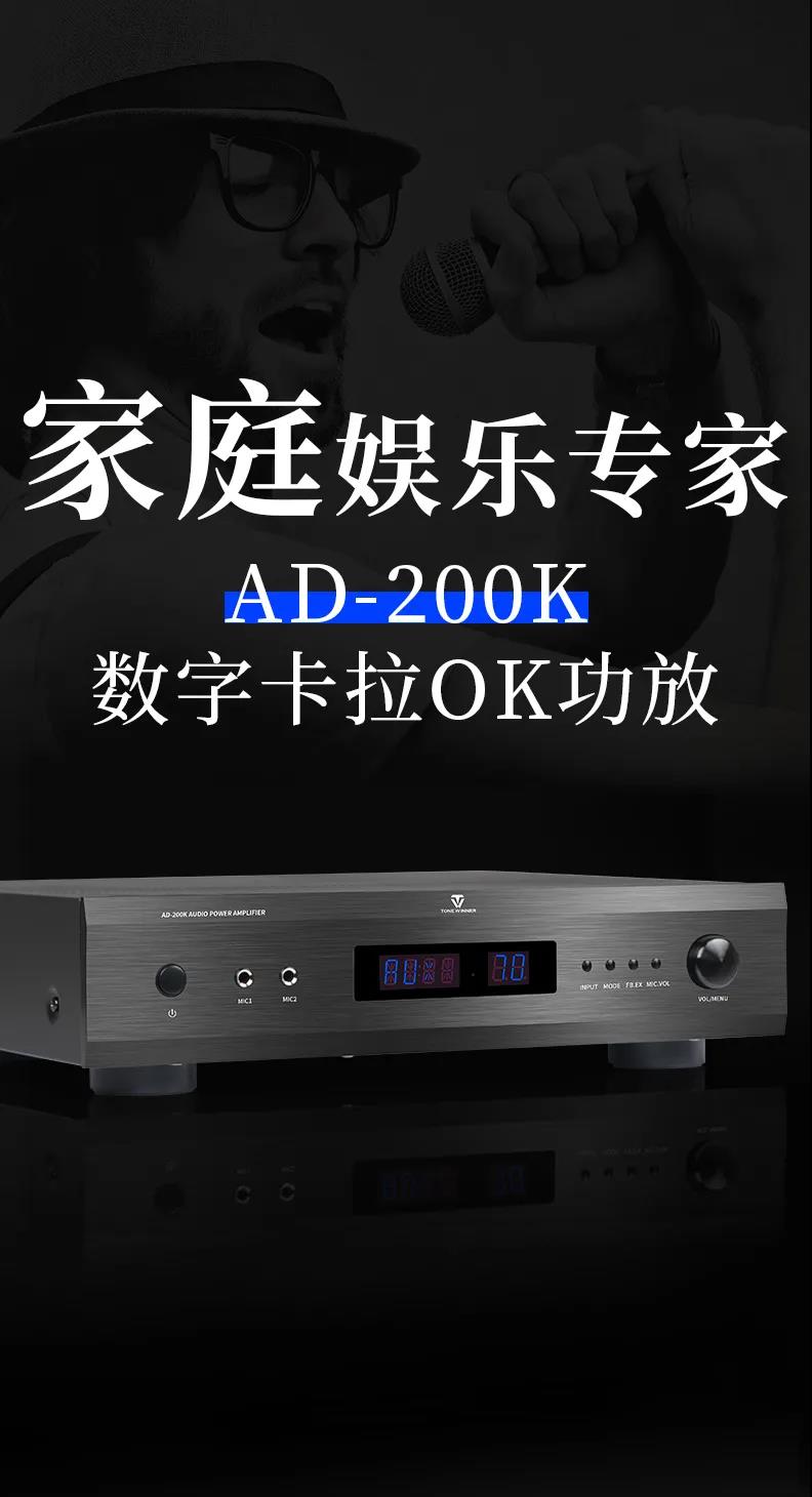 而现如今越来越多人追求在家度过休闲时刻,要求在家也能享受专业级KTV效果体验。那么天逸这台专为家庭K歌打造的数字卡拉OK功放AD-200K,绝对适合你: