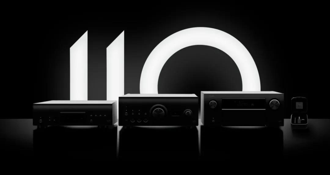 天龙110周年纪念版产品系列,由左至右 DCD-A110网络SACD播放机、PMA-A110合并式放大器、AVC-A110接收机、DL-A110 MC唱头(均限量生产)。