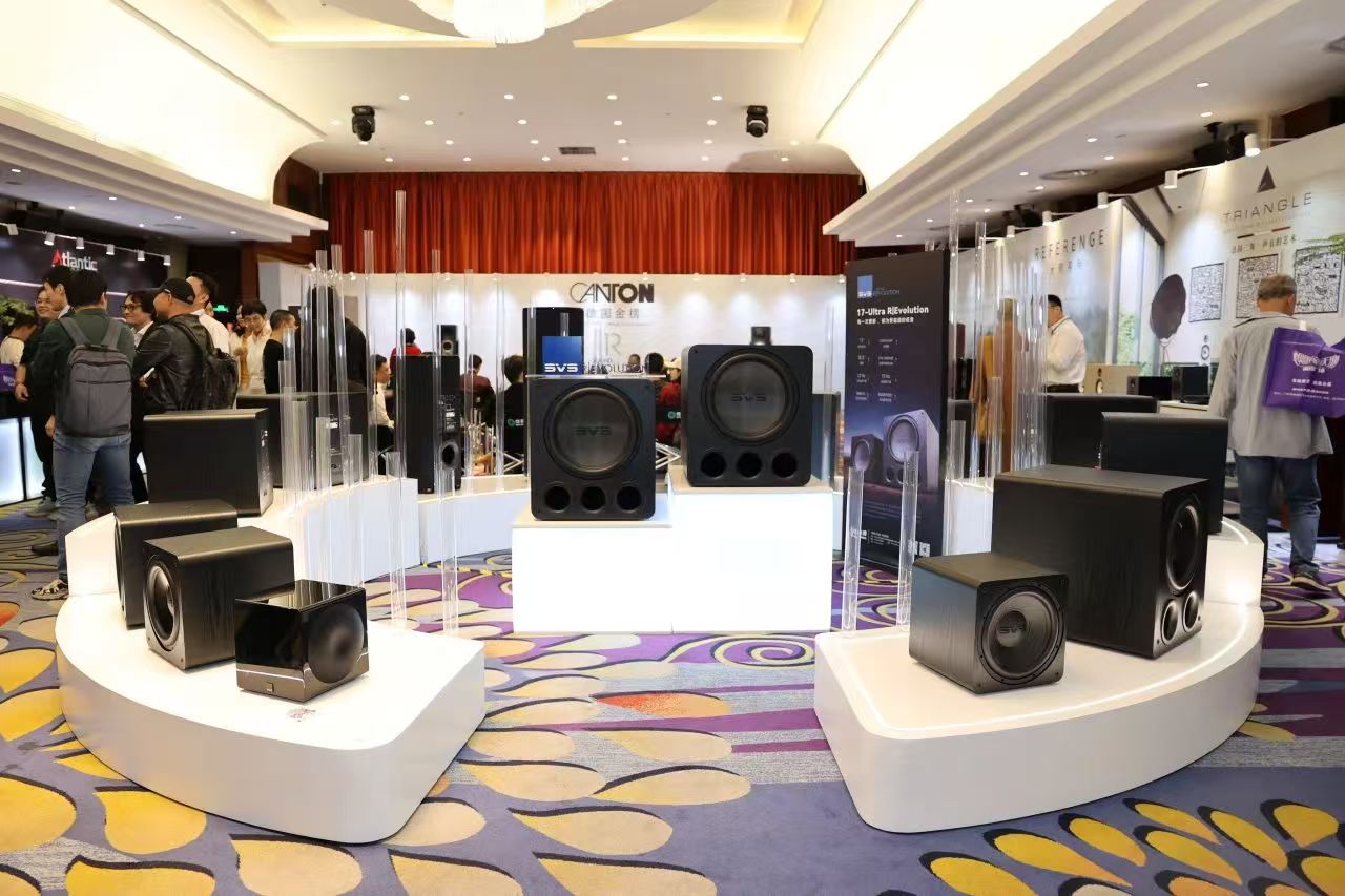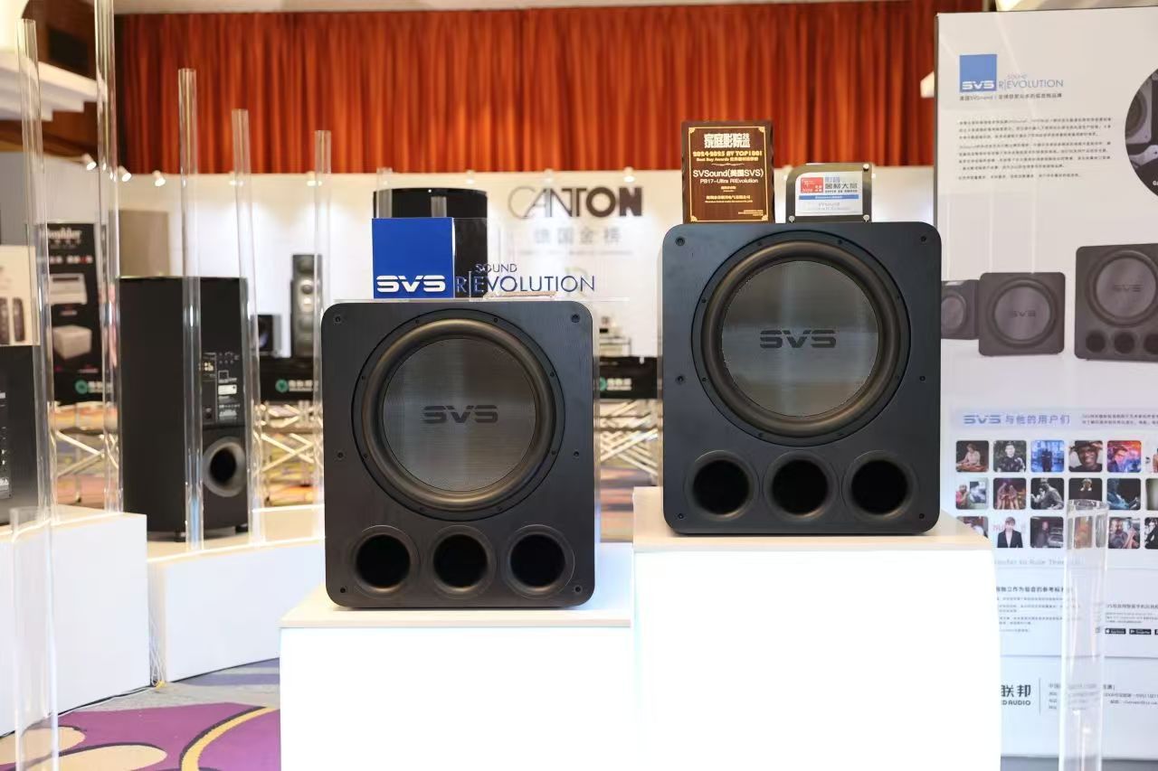 美国 SVS 在展会上展示了全线低音炮产品,其中 17 - Ultra R|Evolution 系列旗舰低音炮也首次公开展出。