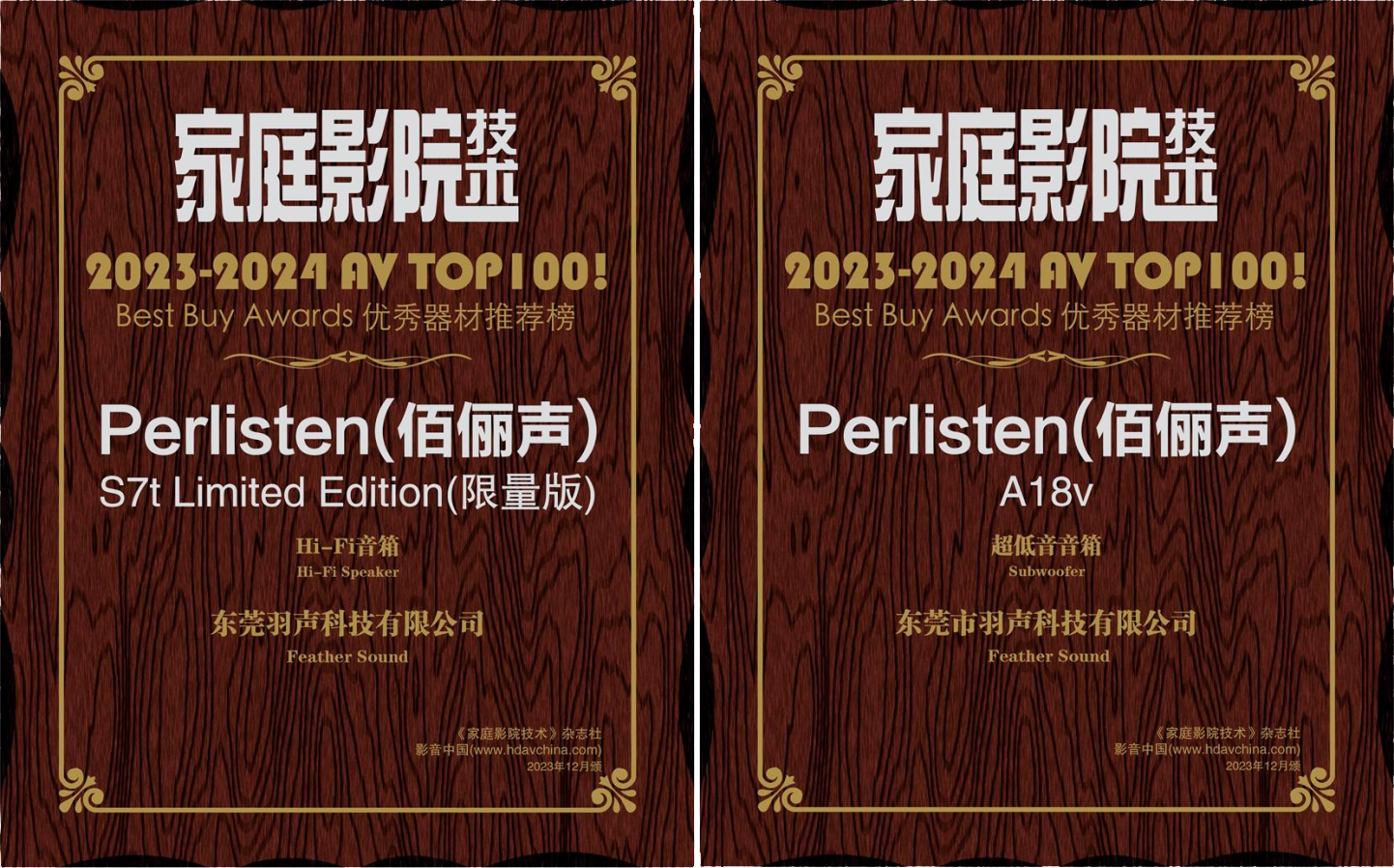 五、Perlisten s7t LE限量版扬声器和Perlisten A18v超低音获得家庭影院技术2023-2024年度AV TOP 100!推荐