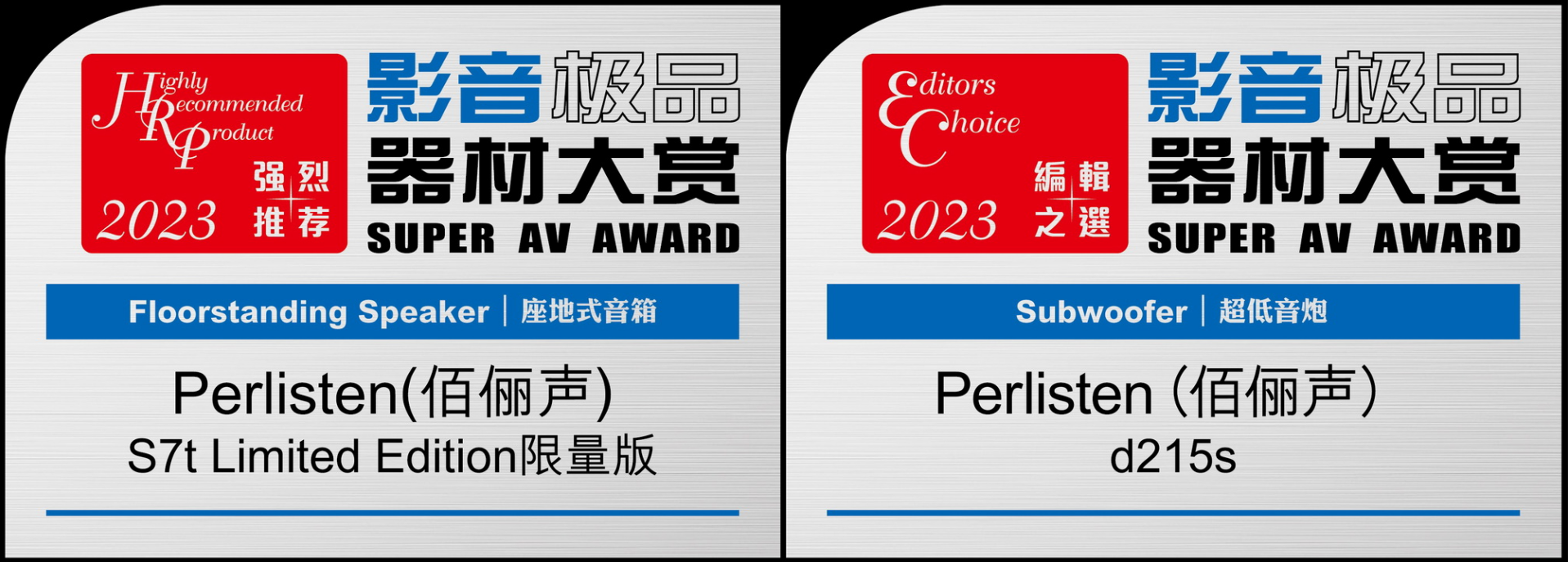在2023年度“影音极品器材大赏”中,Perlisten(佰俪声)S7t Limited Edition限量版落地音箱与D215s超低音,凭借卓越的制造工艺和惊艳的音质表现,在众多参评产品中脱颖而出。S7t LE限量版荣获“强烈推荐奖”,D215s超低音则获得“编辑之选奖”。