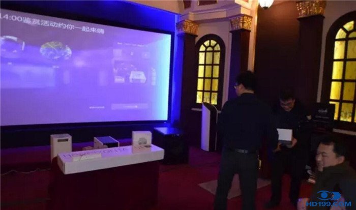 活动大厅是一个面积将近100平的体验厅,许多来宾在最初到来的时候都觉得不可思议,这么大的一个体验厅堪比小型电影院了,这种大面积的影院光用两只PB16-Ultra就能出来好效果吗?答案是肯定的!