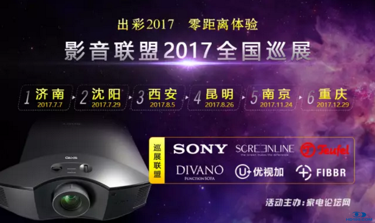 由家电论坛网主办、Sony投影机等六家单位协办的“影音联盟2017年中国六城市4K超高清、全景声巡展”即将到达西安站!