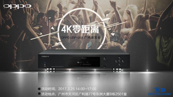 3月25日,4K蓝光播放机UDP-203现身广州啦——OPPO影音特联合家庭影院技术杂志社举行UDP-203线下鉴赏会,邀请广州地区影音爱好者零距离体验4K HDR震撼画质效果。心动的小伙伴们赶紧报名吧!