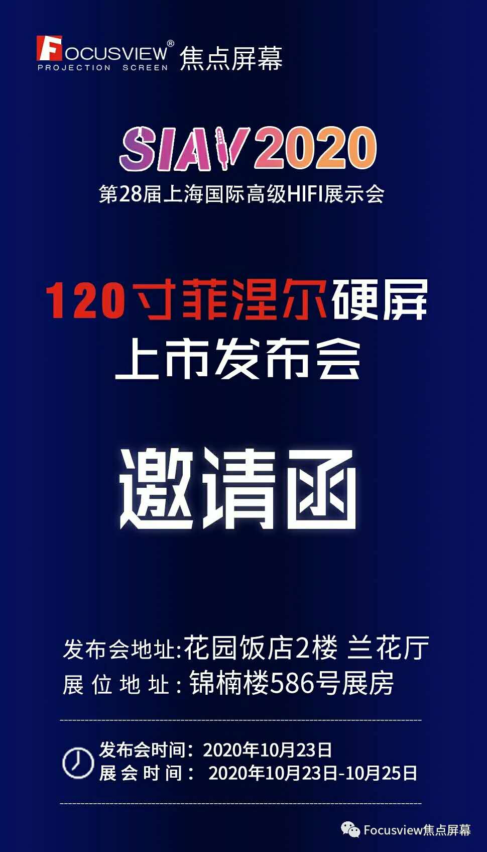 一年一度的上海SIAV展即将于本月23号在锦江饭店拉开帷幕,本次展会焦点屏幕不但会展出旗下全线主力产品,还将在23号上午召开全球首款120寸菲涅尔屏幕的上市发布会,并同时公布这款屏幕的市场售价,敬请期待。
