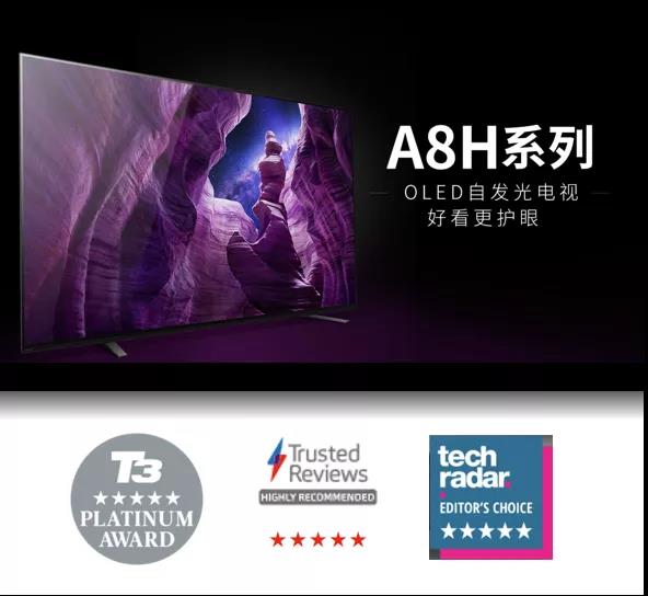 索尼OLED电视A8H荣获三家权威外媒Trusted Reviews、T3、techradar满分测评推荐