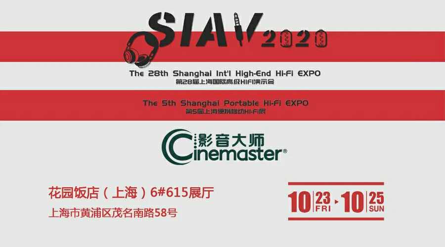 10月23日-25日,2020上海国际音响展,影音大师在上海花园饭店6楼615厅期待您的到来。