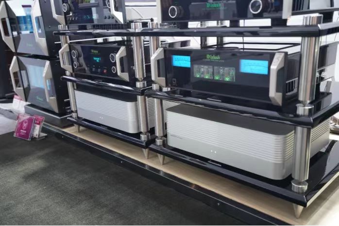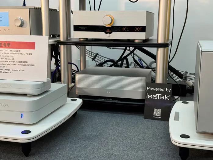 第二个空间是来自麦景图和世霸的房间。这里演示了全套麦景图的旗舰和世霸顶级的扬声器,选用了两台英国Isotek V5 Sigmas电源处理器,为这套超级系统提供了源源不断的好声音电源。