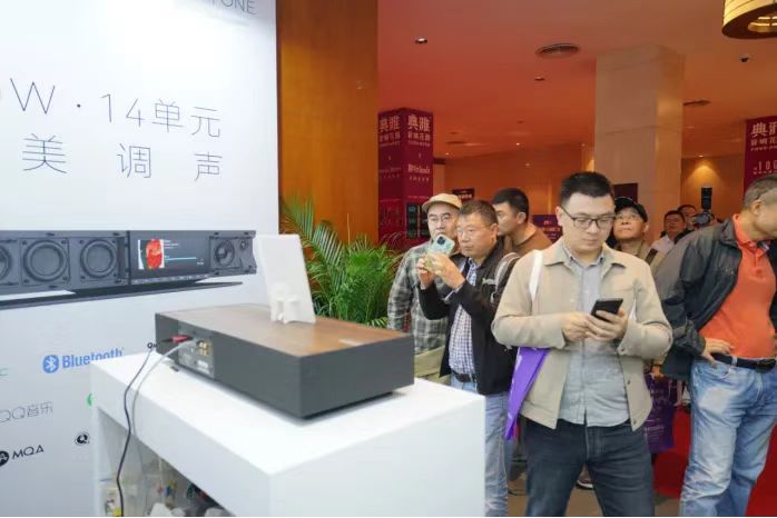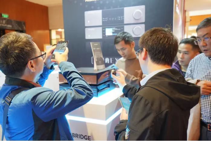 在开展前一周也就是11月15日才正式开卖的全新数播功放音箱一体机EVO ONE是此次展会上最引人关注的产品。严格意义上来说,这并不是一个HIFI产品,它更像是一个数码类的多媒体音响。它并没有两只喇叭的表现形式,所有的讯源数播和功放全部继承在一个箱体中。又或者说它又很像一个加厚了的Souudbar。然而当你仔细推敲,它既有之前各种产品的影子,也具有之前其他产品所不具备的特性。他是蓝牙数码音响里最HIFI的,又是HIFI音响里最便捷的,同时又兼具了生活时尚和多功能的元素。