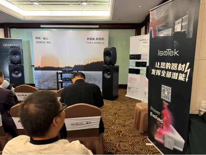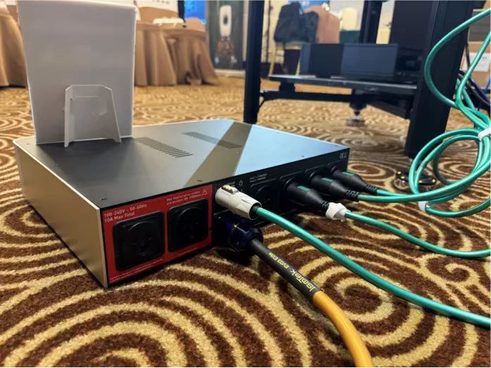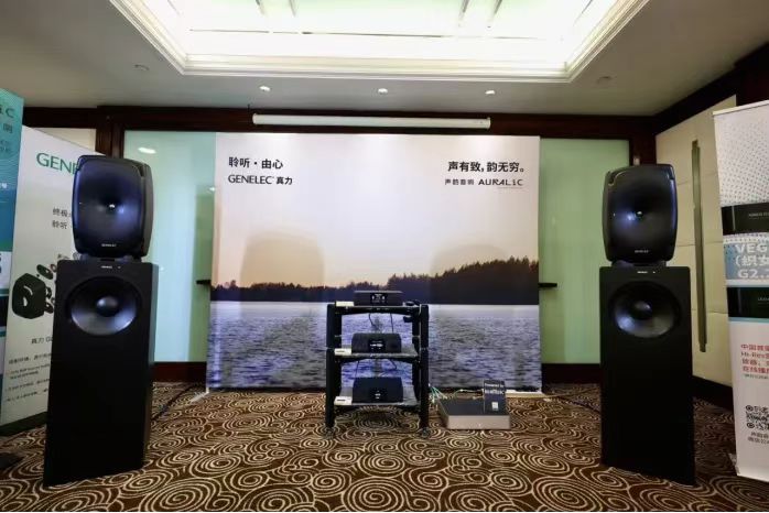 第一个空间是来自Auralic声韵数播和真力音箱的展房。在这个空间里Auralic声韵的旗舰三件套数播搭配真力的8361+W371系统。英国Isotek提供了V5 Elektra艾丽卡的电源处理器和EVO3 Initium电源线产品,有意思的是全套产品全部都是发烧级的国标电源线。
