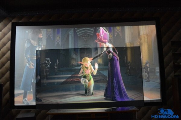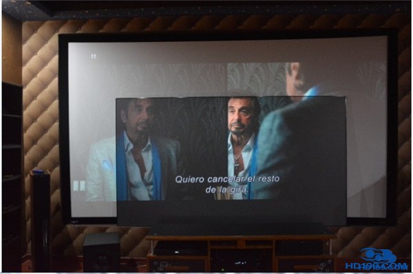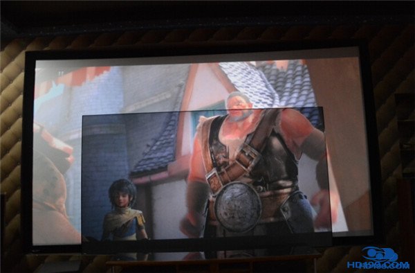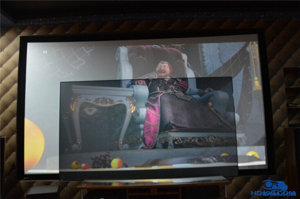 下面是这款幕的一些参数介绍,及一小部分的对比图片,后面是180寸弧形画框白幕,前面是120寸高清抗光幕。实际观看效果再为惊艳,如是有方便的坛友也可来我们公司实地观看一下效果,随时欢迎光临!