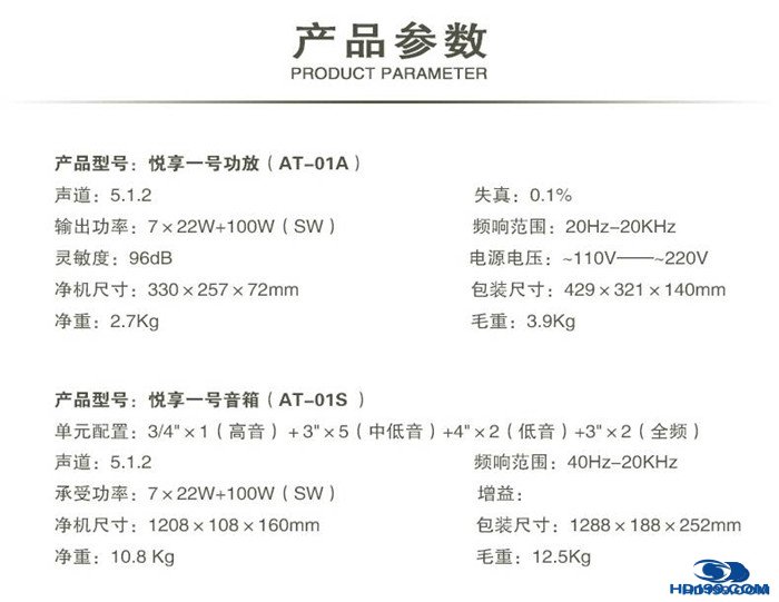AT-01S的每一个声道均采用独立腔室,确保了每个声道声音的分离度。所有的喇叭均采用高灵敏度、低失真度的设计,音质一流,声音淳厚温暖,低音气势磅礴。