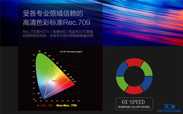 为了让色彩从导演构思到观众观看保持连续性,在多个设备上呈现出一致的色彩表现,就需要用色彩空间来管理色彩。比如说,电影在后期调色的时候遵循DCI-P3色彩标准,而到了发行后期,高清电视和蓝光高清DVD采用Rec.709高清色彩标准。而明基色准家用投影机遵循Rec.709高清色彩标准,而4K家用影院投影机X12000更将色彩空间扩展到DCI-P3广色域,致力于让影迷们看到导演眼中的色彩,体会电影佳作的艺术气韵。