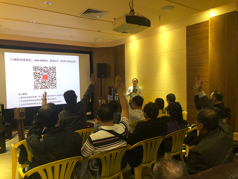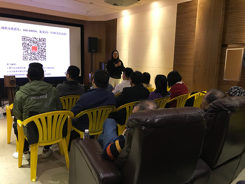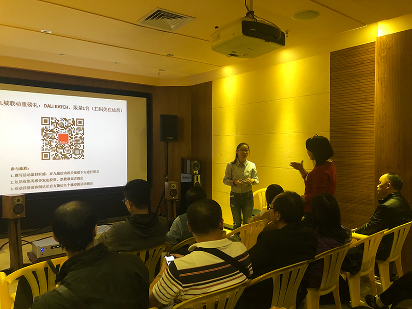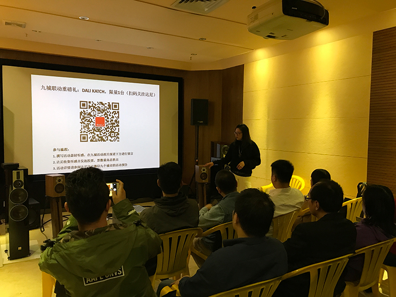 午饭的点刚过,活动现场已经陆续有人入座,至活动开场,已是座无虚席,把本就不算大的视听室挤得满满当当。达尼(中国)华南区销售经理陈海伦做了简单的开场,老友般的寒暄,一时间气氛融洽。简单的达尼文化介绍和两款主角产品的介绍后,由达尼(中国)市场部专员张菁带大家一同聆听达尼的声音。
