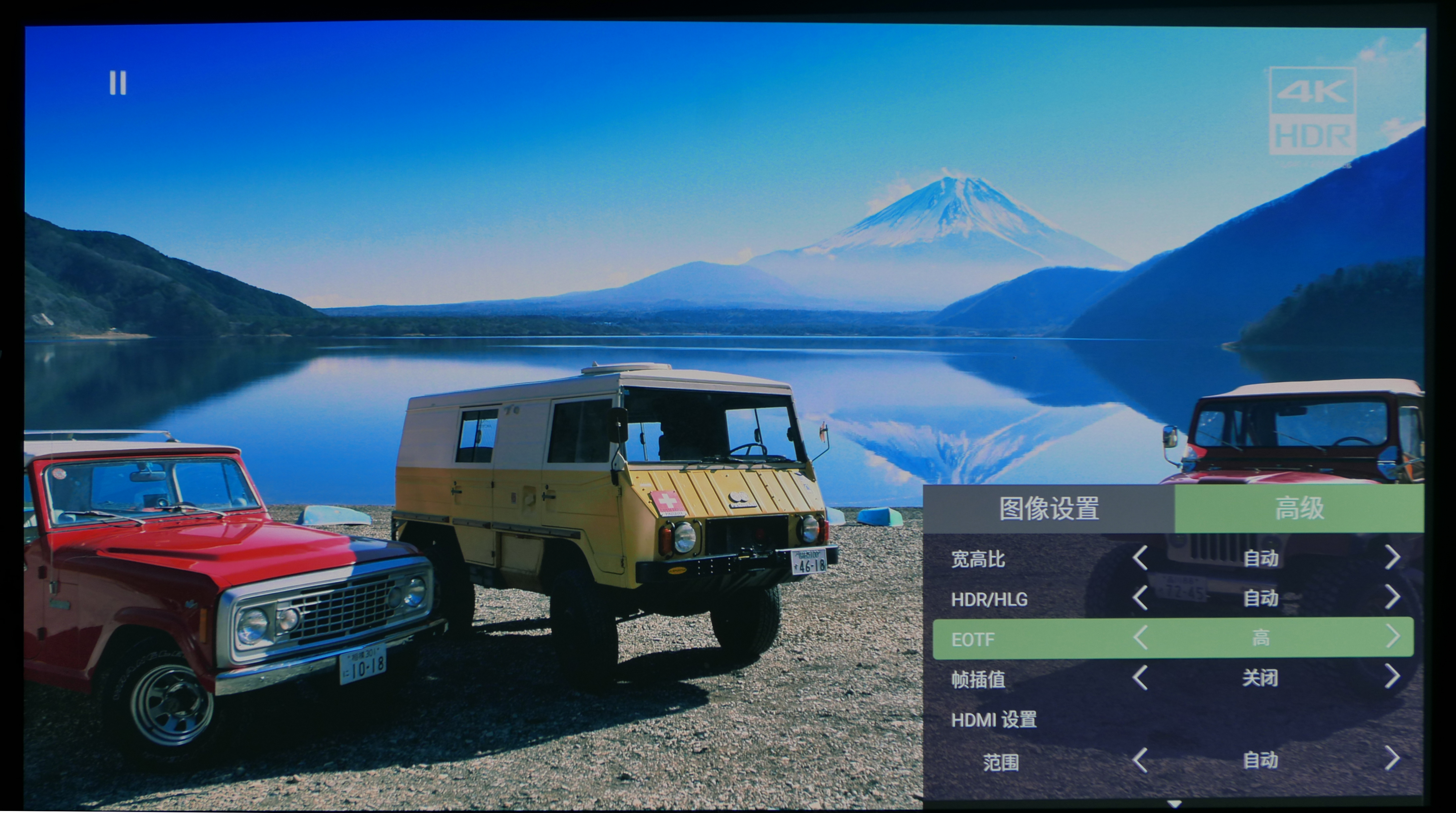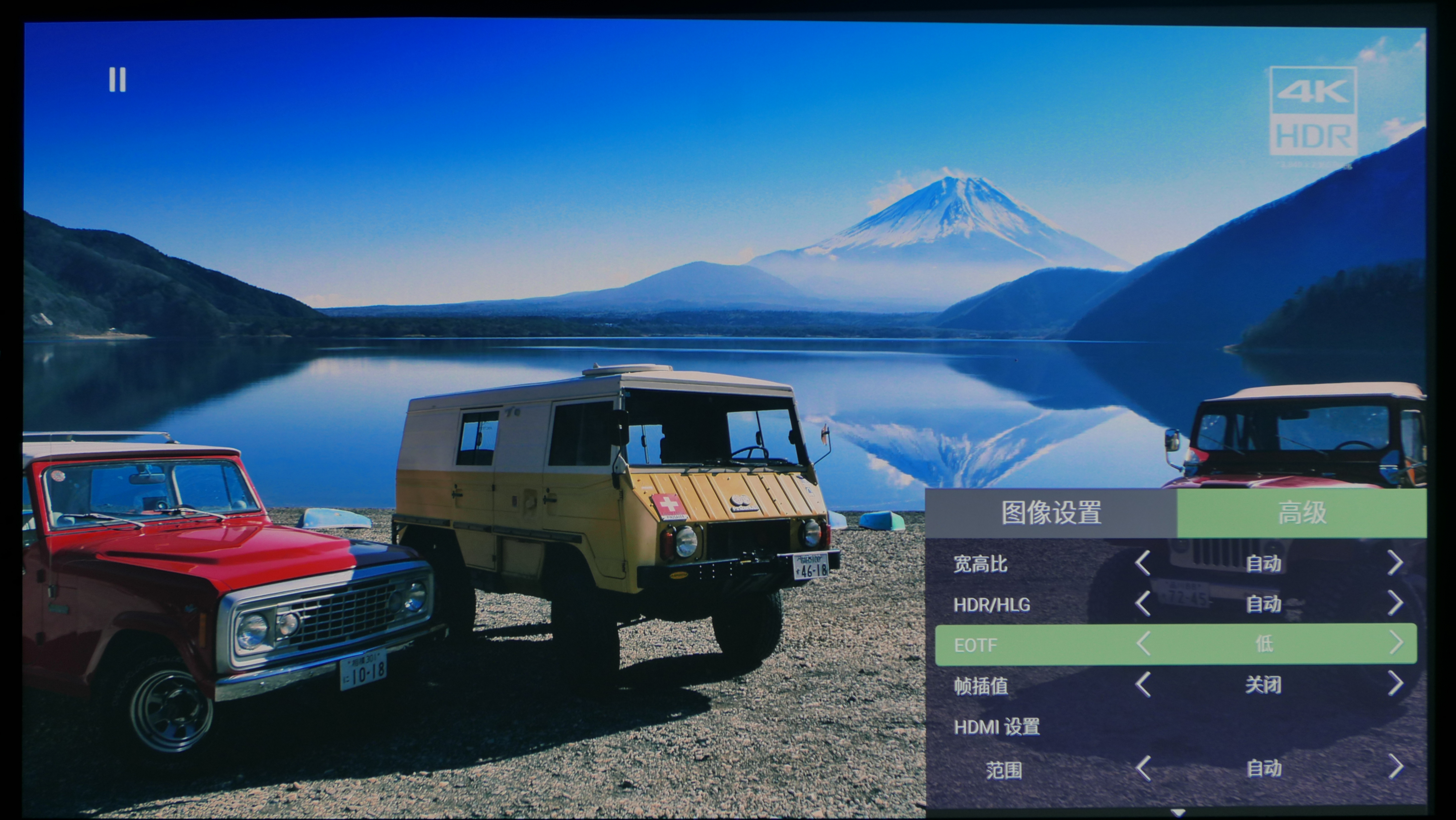 V8-4K自带运动插帧功能,支持4K,使用《Spears & Munsil》测试碟进行测试,发现它的确能起到一些优化效果,不过算法一般。我并不建议在日常观影时开启插帧。如果你是观看像世界杯这样的体育赛事,可以开启它,画面会变得更加清晰流畅。