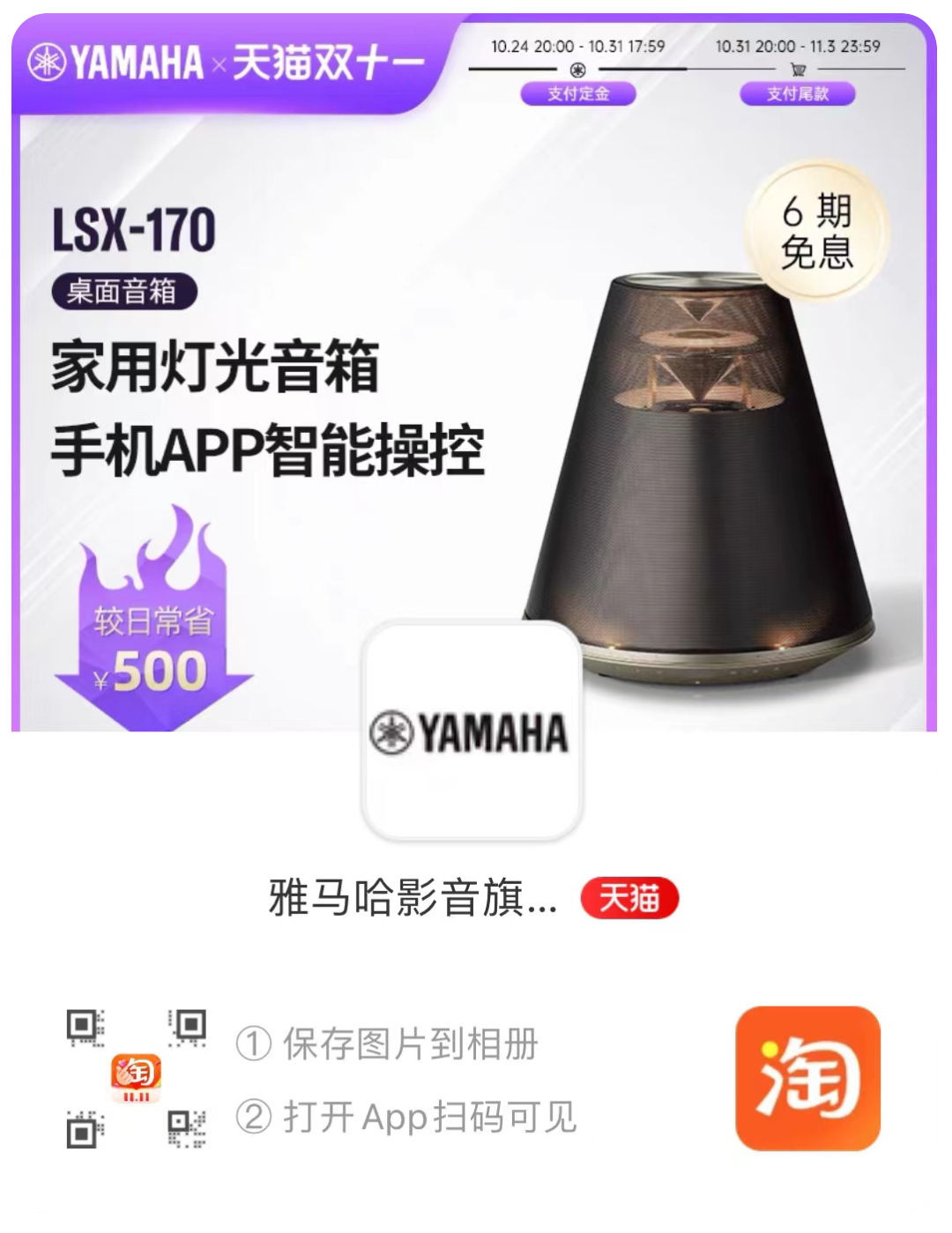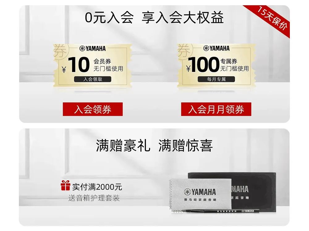 雅马哈618狂欢大促 6.15 20:00—6.20 23:59 0元入会权益 加入雅马哈影音旗舰店会员