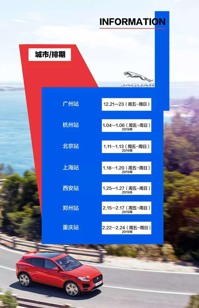 捷豹E-PACE计划将于12月下旬至明年2月在全国7所城市举办E-PACE FASHION SHOW活动,英国之宝的高性能产品也将在7所城市与各地的时尚达人相见。
