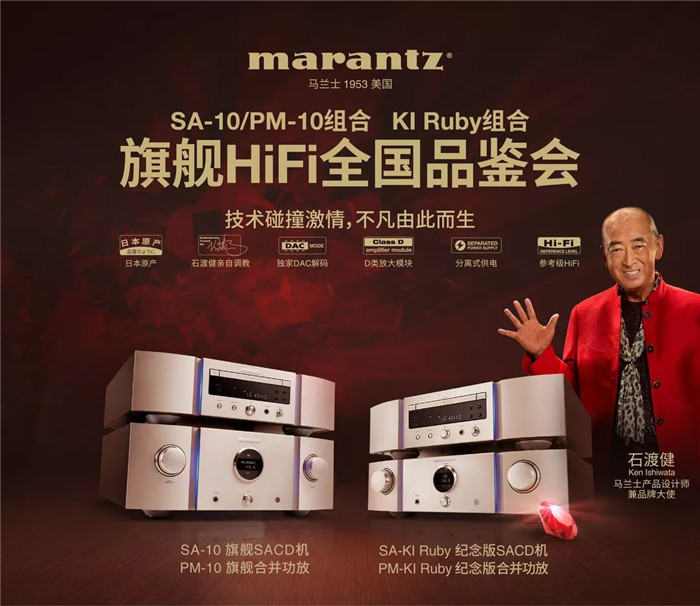 本月Sound United携旗下Marantz马兰士将继续在南宁、长沙、北京、深圳、石家庄、上海、成都,这七个城市重磅起航,届时大家可以亲身体验到来自马兰士品牌大使石渡健先生专业调音制成的作品。