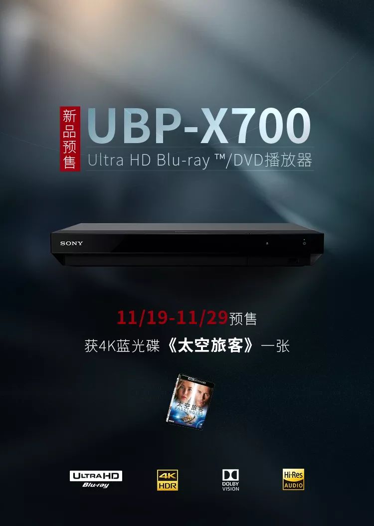 索尼正式发布旗下首款搭载杜比视界技术(Dolby VisionTM)的4K UHD Blu-ray播放器UBP-X700,并同期启动预售,预售价2690元。