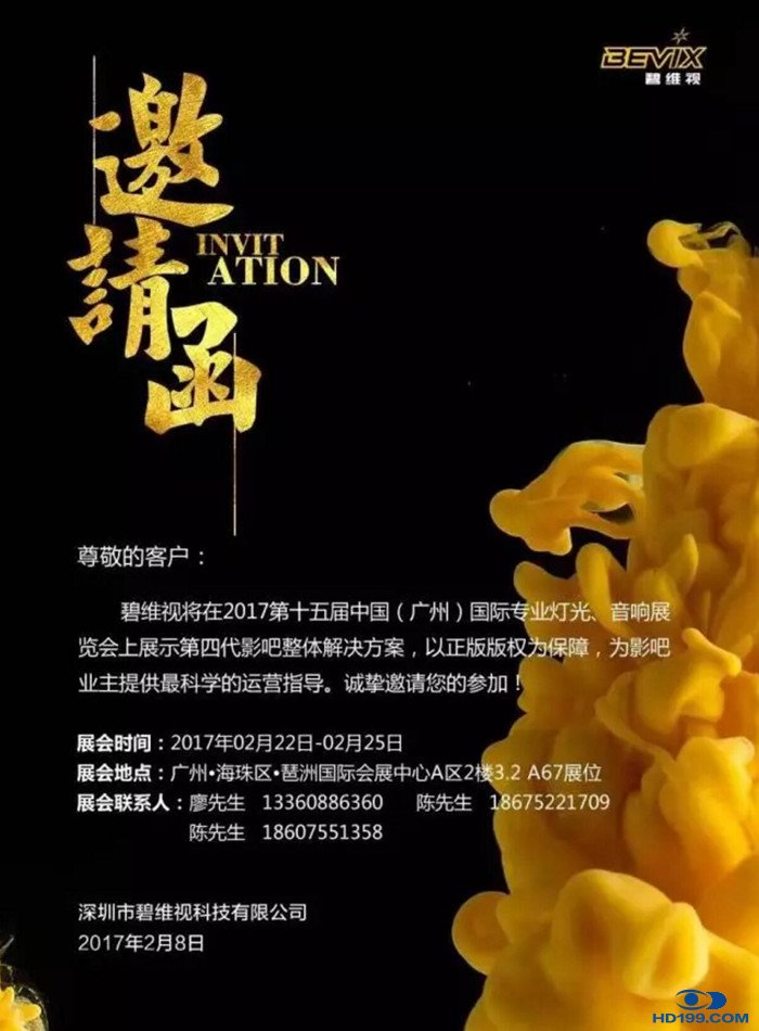 第十五届中国(广州)国际专业灯光、音响展览会将于2017年2月22日至2月25日在广州琶洲国际会展中心A区举行。深圳市碧维视科技有限公司将携第四代影吧整体解决方案参展,具体信息如下: