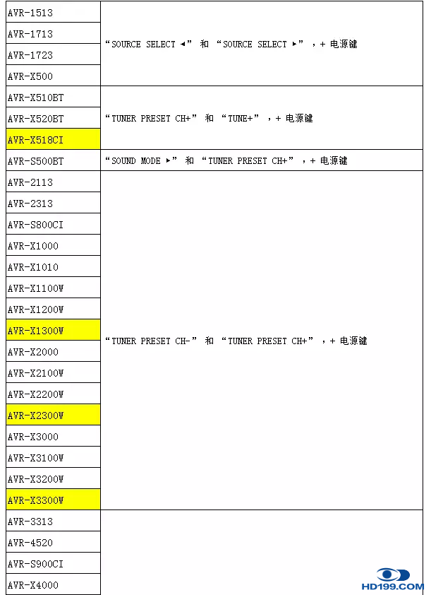 下面小编就带大家看看近几年常用的DENON天龙、Marantz马兰士的用户模式复位键。