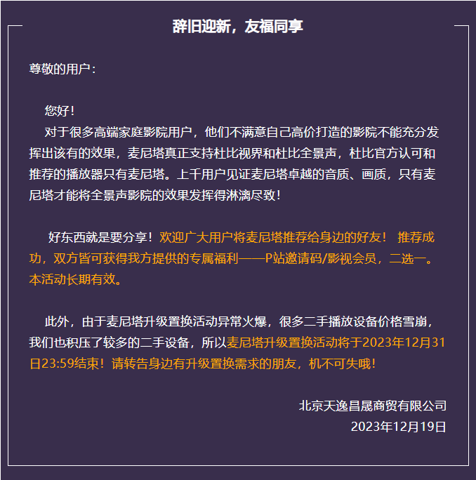 随着麦尼塔升级置换活动如火如荼地进行,越来越多的用户认识到,麦尼塔从源头上决定了影院的效果,至关重要!用户们纷纷表示:“开机即惊艳!”