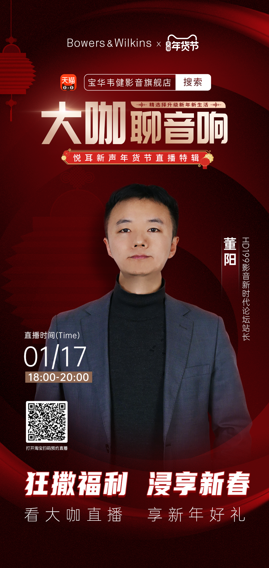 新的一年来临了,您是否已经在置办各种年货了,发烧友犒赏自己的方式肯定是买到自己满意的器材了,那么1月17日18:00-20:00 您一定要去天猫宝华韦健影音旗舰店直播间,