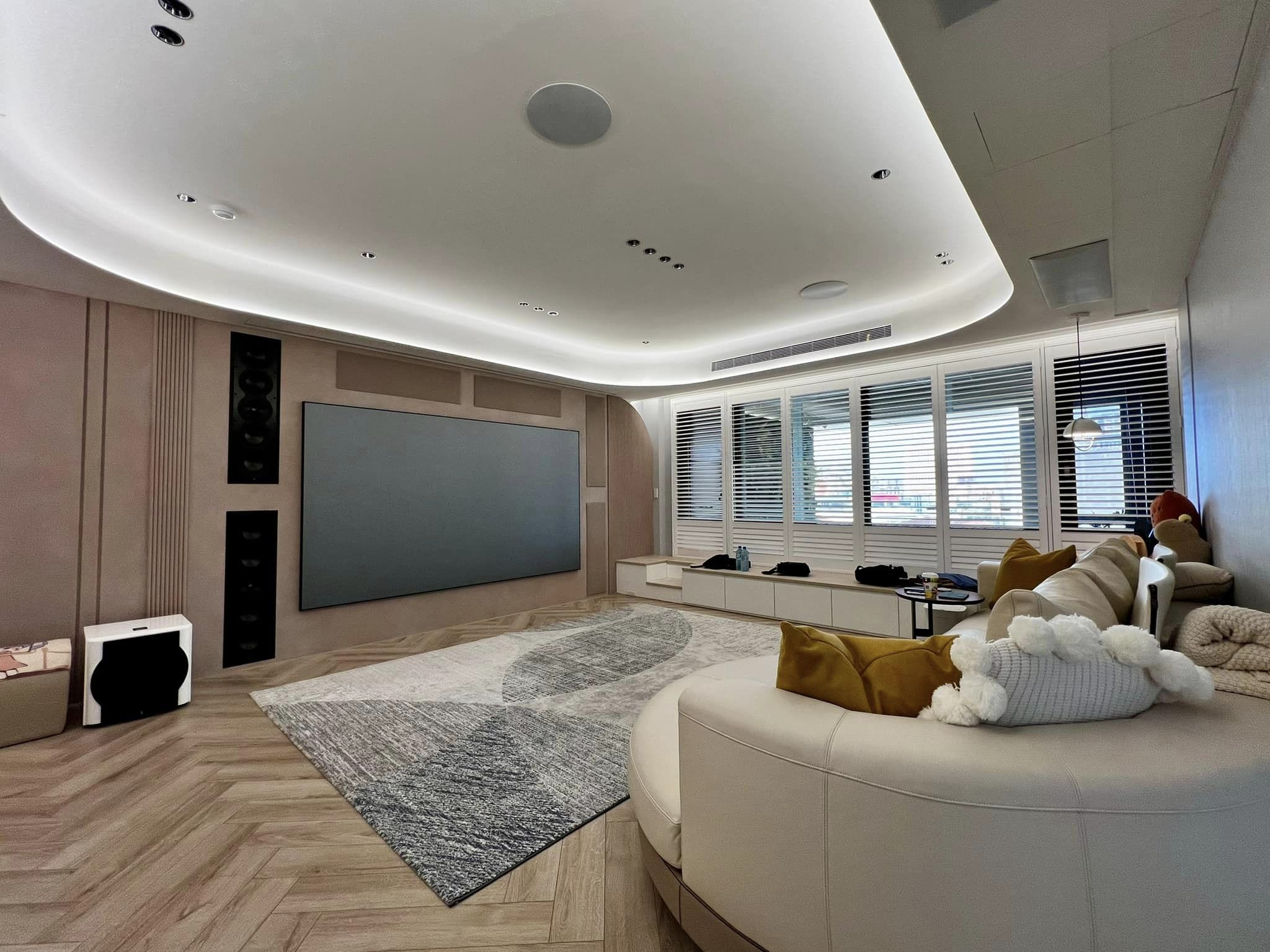 影音室采用的是9.2.4声道设计,这种布局对于观影片源的兼容性更好,能够兼容Dolby Atmos、DTS等全景声编码,是目前性价比最高的选择。