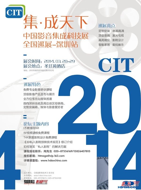由《家庭影院技术》杂志社主办的“中国影音集成科技展全国巡展——深圳站”将于2014年3月28~29日在深圳圣廷苑酒店举行,地址:深圳市福田区华强北路4002号。