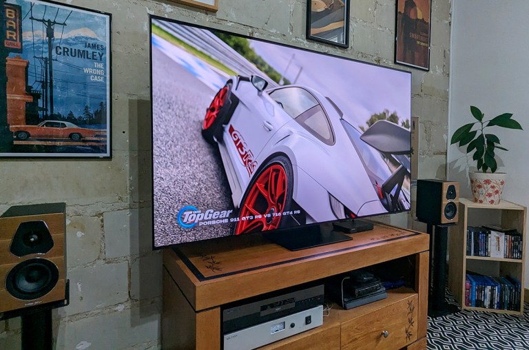 三星 TQ65S95D 高端 4K 电视机(165 公分)拥有极其明亮的 QD-OLED 面板,可呈现浓郁的色彩,其新型滤光片还能消除所有反光,即使在光照充足的白天也是如此。其超薄屏幕配有一个连接盒,方便集成。