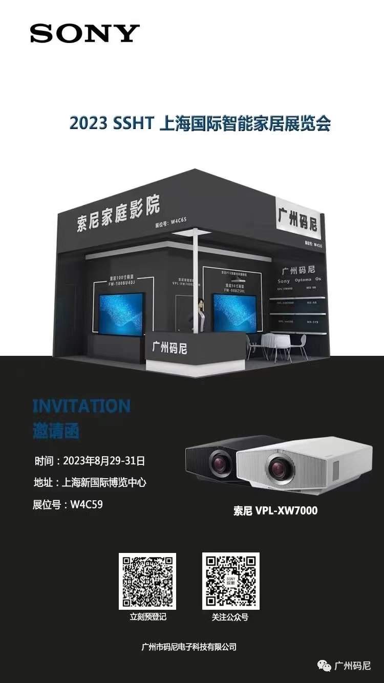 2023上海国际智能家居展览会将于8月29-31日在上海新国际博览中心举行!广州码尼作为索尼、奥图码、OS授权总代理,将携代理产品亮相上海国际智能家居展览会。