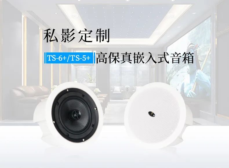 此次天逸TS系列同轴嵌入式音箱共推出TS-5+和TS-6+两个型号,型号中的数字代表的就是该款嵌入式音箱的中低音单元尺寸。此外,TS-5/6+嵌入式音箱精选钕磁球顶高音,频率响应高达20KHz。该高音单元为可旋转设计,提供38°范围内角度调节,以减少边界反射,提高了声音的整体扩散性。