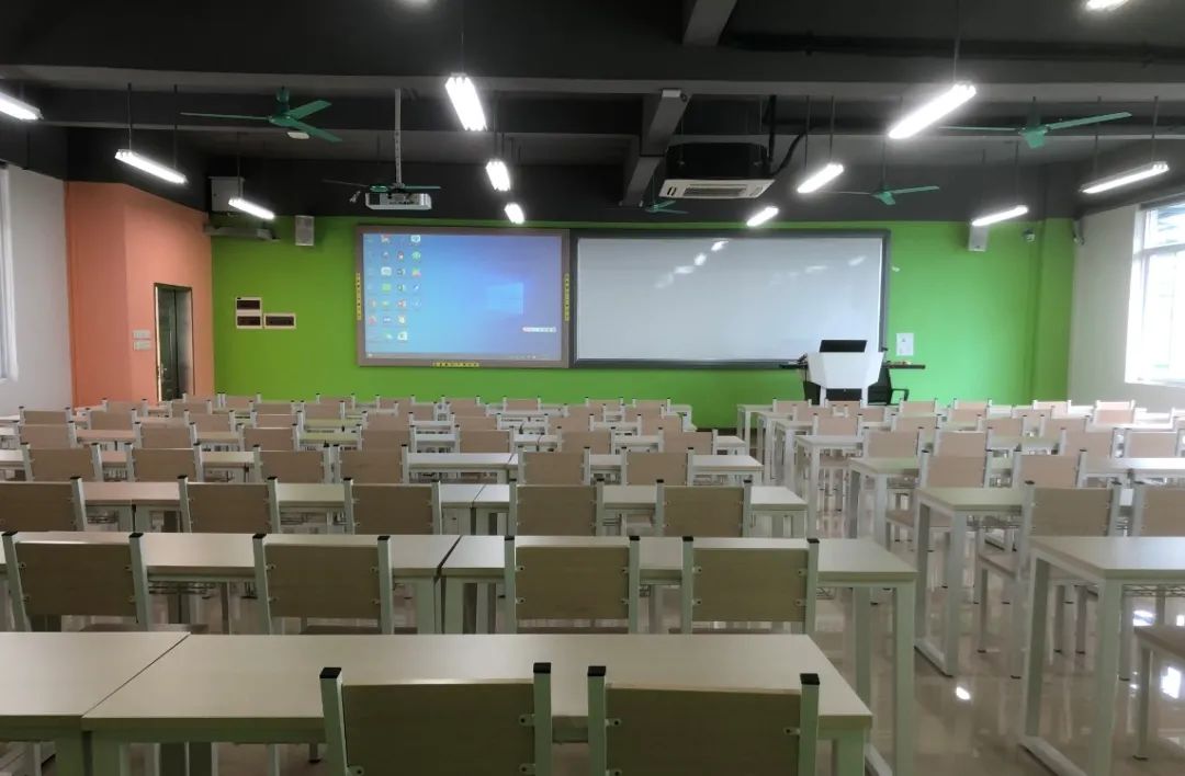 今年初夏时节,学校已陆续完成安装了索尼VPL-P501系列激光投影机共计约180台。在大型的阶梯教室中,为了让学生能清晰看到老师的授课内容,学习更专注,特别选取了两台投影机左右同时投影教学内容的设计。