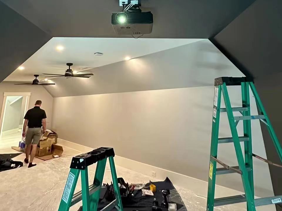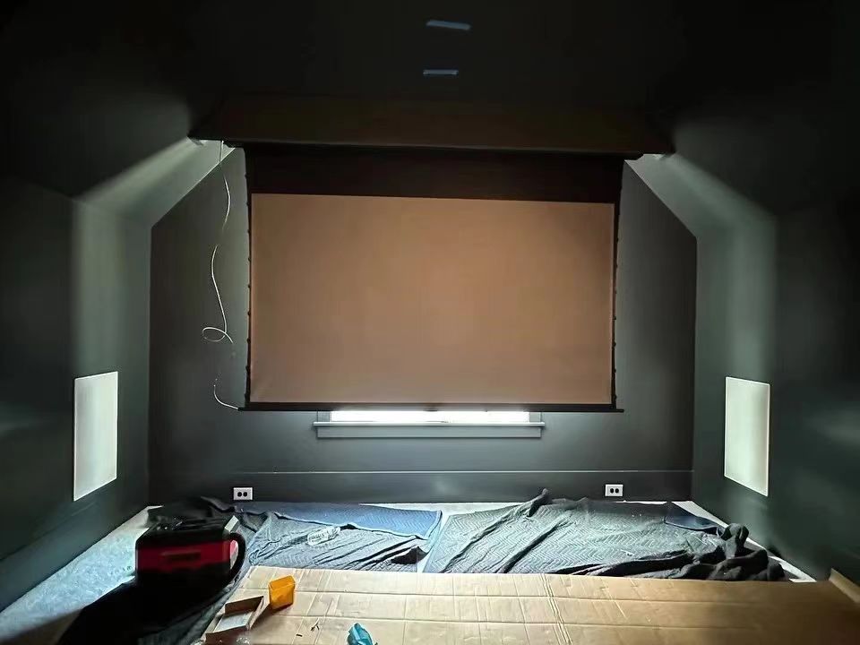整个房间被Origin Acoustics的扬声器系统所覆盖,从墙内的左、中、右扬声器到天花板上的环绕扬声器,再到后方的左右扬声器,每一个细节都经过了精心的设计与布局。这种全方位的布局确保了声音在各个方向上的传播都能达到最佳效果,为观众带来前所未有的听觉盛宴。