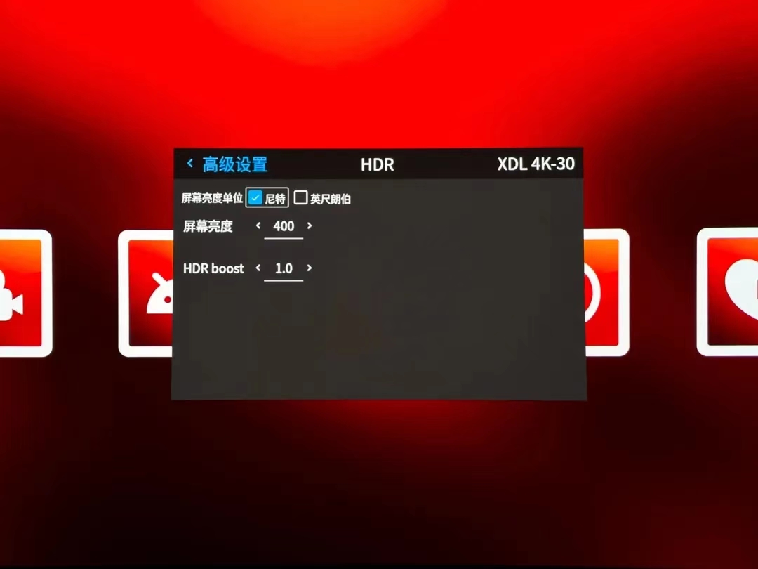 而在屏幕亮度上,可以选择不同的屏幕亮度单位,并且按照我们测量得出的屏幕亮度数值,输入到4K30里面,让他自动生成出最合理的HDR状态。