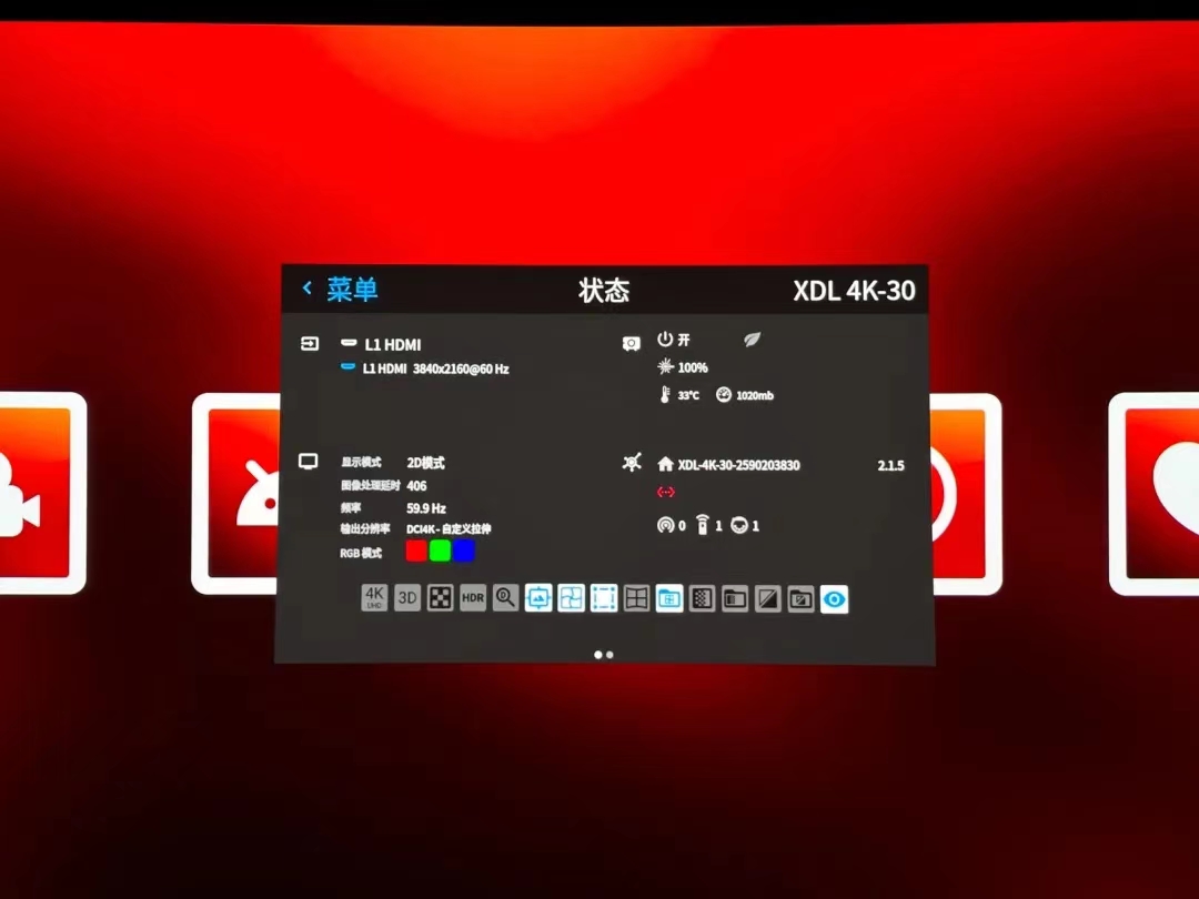 4K30内部采用了三片式的DLP投影芯片,规格是相当领先的1.38英寸。但最吸引眼球的是他采用的6色激光光源,不仅有传统的红绿蓝,还加入了青紫黄,每种颜色的纯度和亮度都非常饱满,再加上他的峰值亮度达到了30000流明,投影出来的画面无可挑剔。