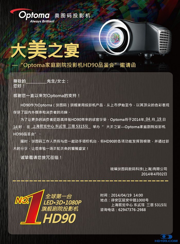 HD90作为奥图码最新旗舰级家庭投影机将再次在SISV2014东贰馆3513房进行动态演示,厂家技术人员和爱好者进行即时互动。