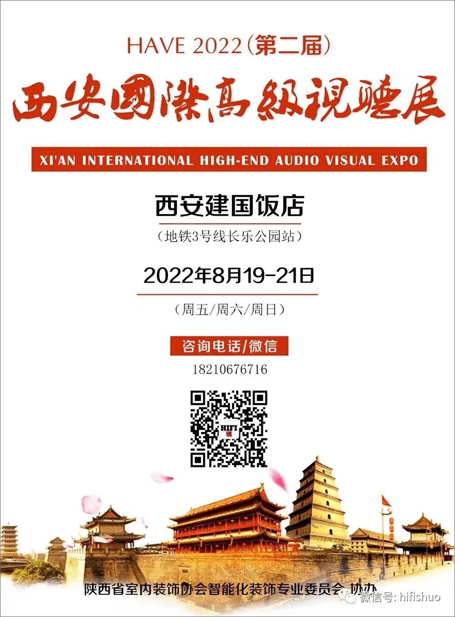 由HIFI说主办,HAVE 2022(第二届)西安国际高级视听展,简称“西安音响展”,将于8月19-21日,每天9:00~17:00,在西安建国饭店举行,所有观众可直接到现场免费参观!