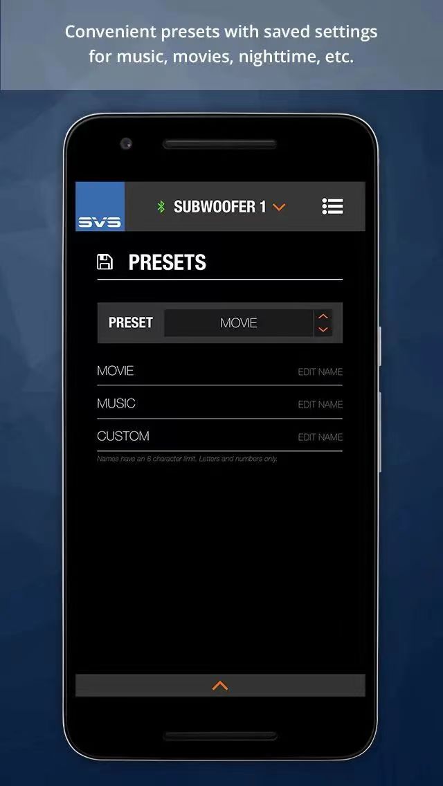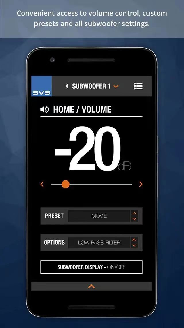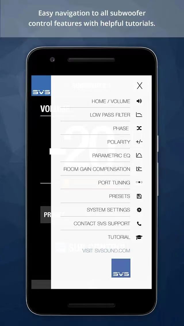 SVS智能手机应用程序可与 Apple iOS® 和 Android® 设备配合使用,通过控制所有 DSP 功能(包括音量、参数均衡器、低通滤波器、相位、极性、房间增益、端口调整、自定义预置和系统设置),充分释放 PC-4000 超低音的深度、力度和细微差别。