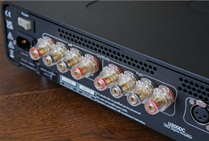 U500DC后面的连接面板也是由4毫米铝制制成,并且在布局上考虑得非常周到。电源插座和电源开关位于设备的左侧。当它放置在机架上时,这些部件非常方便触及。 电源开关是一个供电开关,通常保持打开状态,以便在关闭前面的电源按钮时将设备保持在待机状态。