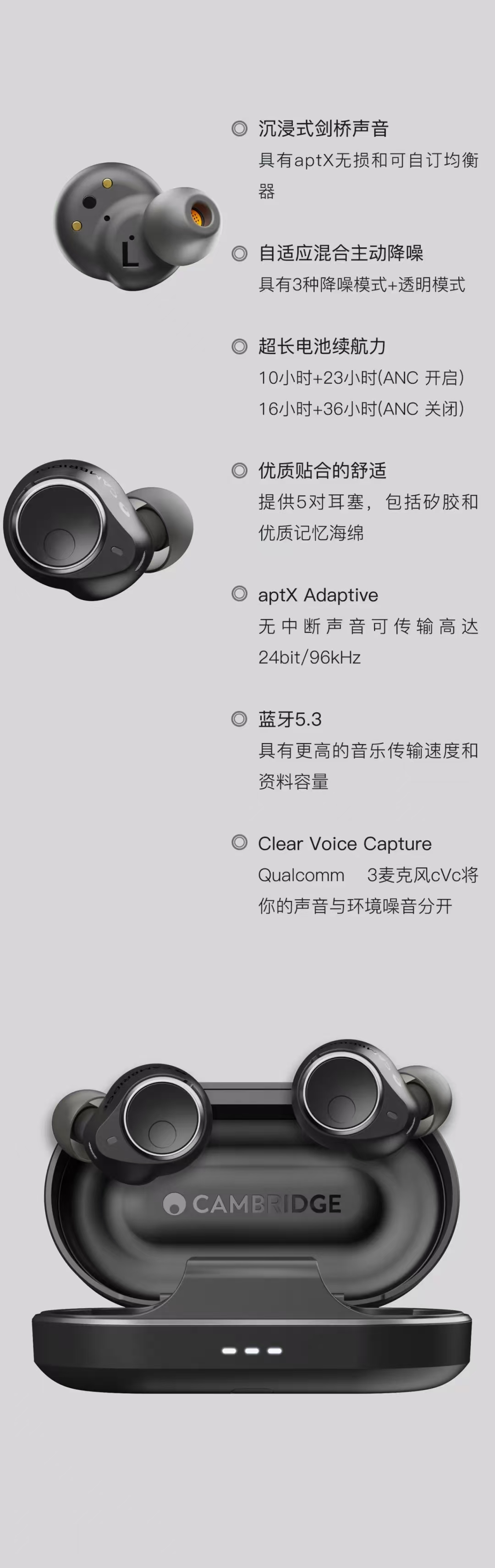 剑桥Melomania M100:具有主动降噪功能的真无线耳机