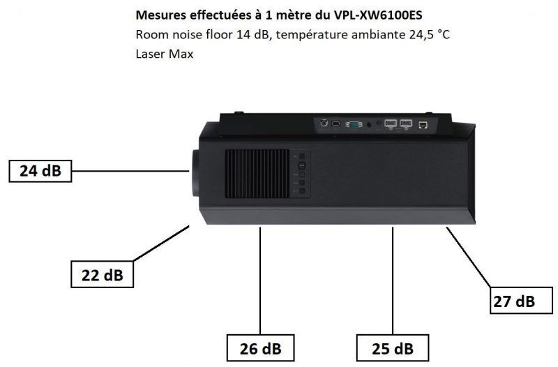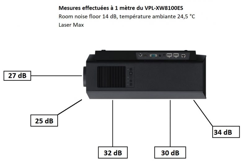 因此,从根本上来说没有变化:由于 XW 系列的空气通过前面吸入,通过后面排出,因此它们的最佳放置位置是在观众后面且处于较高位置。总体而言,VPL-XW6100 的散热噪声水平与 VPL-XW7000 相同,但 VPL-XW8100 更加嘈杂。这是由于其光亮度增加的结果。