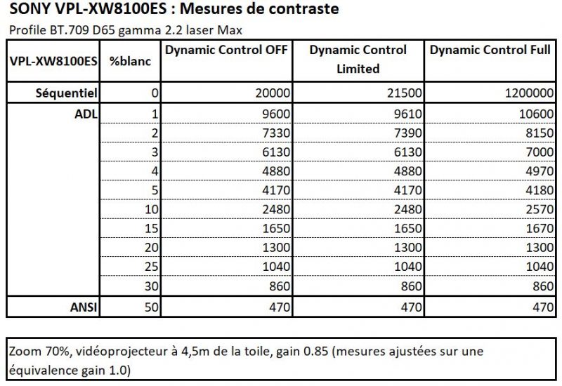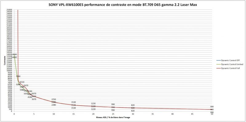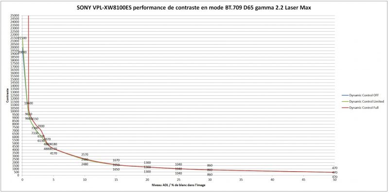 最后,最重要的部分是对比度直方图的控制,针对不同的 ADL(白色百分比)值和 ANSI。这也将是一个机会,让我们测量激光调光模式的效率。