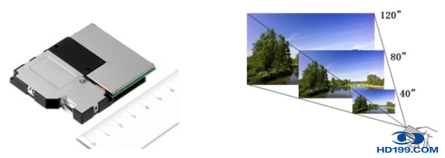 据悉,这种微型投影模块可以投射出分辨率为1920×720像素的图像,虽然没有达到1080P全高清级别,但是考虑到其非常迷你的身材,依然给人留下了深刻的印象。除了可以提供常规的16:9比例的影像之外,这种免对焦功能最高可以提供120英寸的影响。而通常来说传统的普通入门级投影产品能够提供的分辨率只有800×480像素。