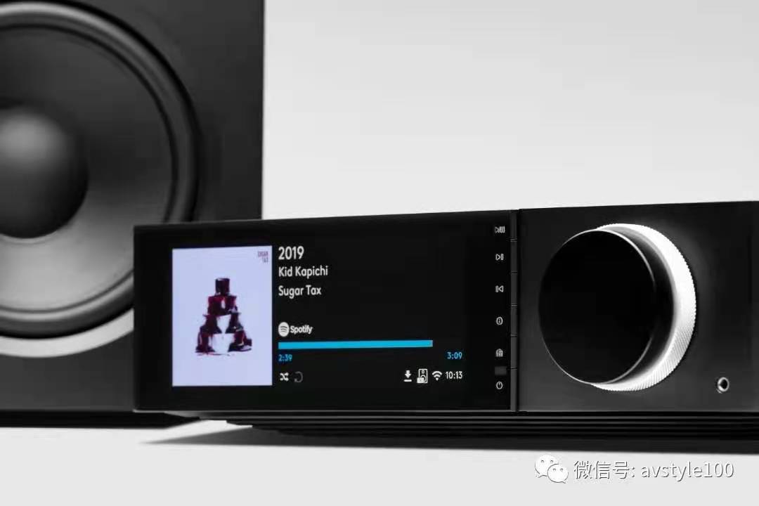 在设计上,Cambridge Audio Evo最突出的控制面板,坚固的黑色阳极氧化铝箱体的正面装饰有 6.8 英吋的全彩屏幕,非常适合显示专辑插图和播放信息,有助于任何手动音源切换或音乐库浏览—,以及用于音量和卷动的控制旋钮。