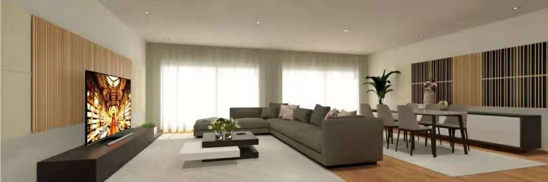 本次展厅就是一个综合考虑时尚色调与影院专业性的一个影视厅,在考虑专业的器材搭配,专业的声学处理的同时,很好地兼顾了多功能家居空间视觉上与空间上,与家居环境的良好融入。